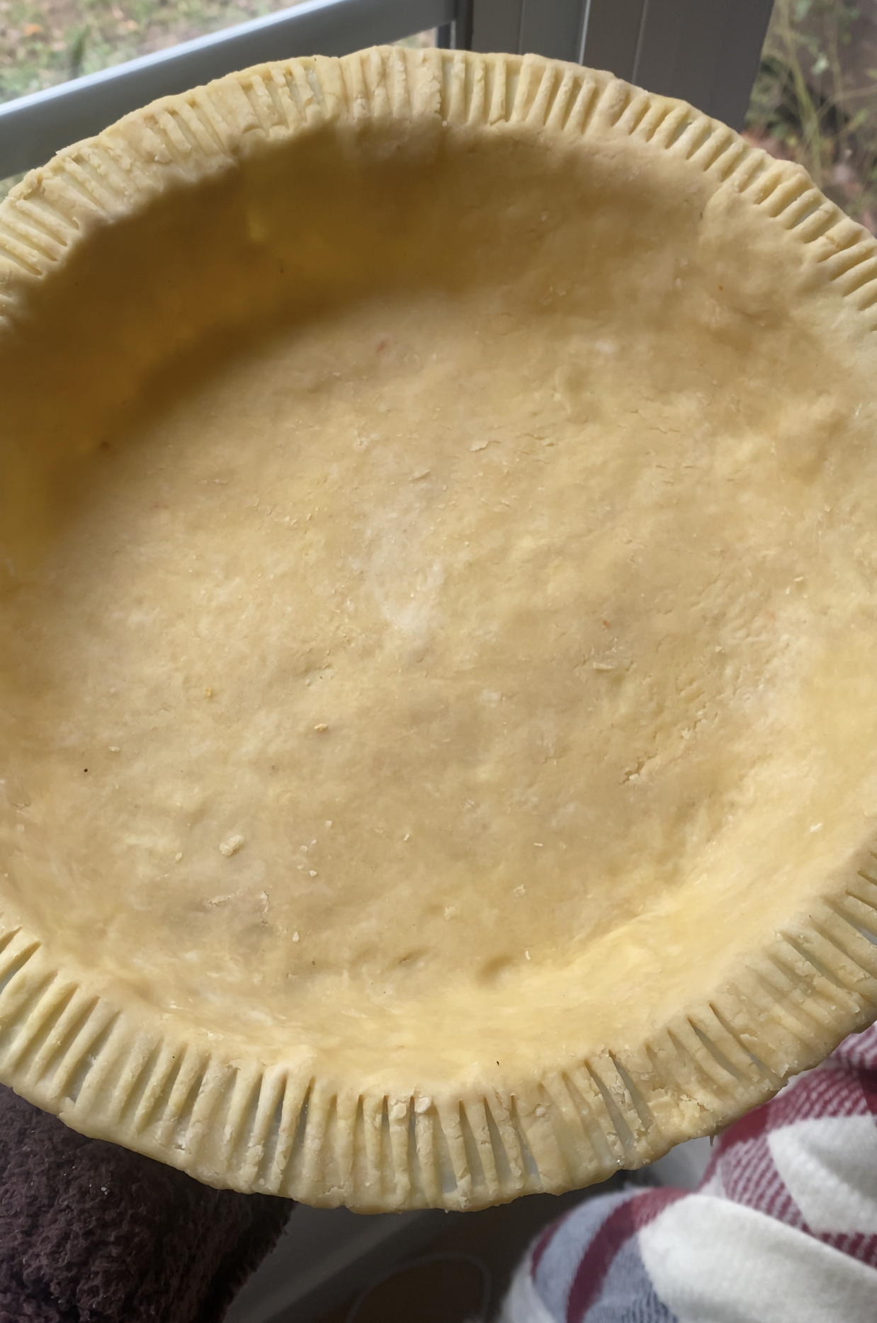 Preheat the oven to 425F. Remove the dough from the fridge and roll out to your desired thickness. Shape into your pie dish (or whatever shape you want for your dish - we love using this recipe to make galettes like below too!).